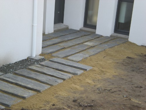 - Dallage, pavage (dalles reconstituées ou pierres naturelles)